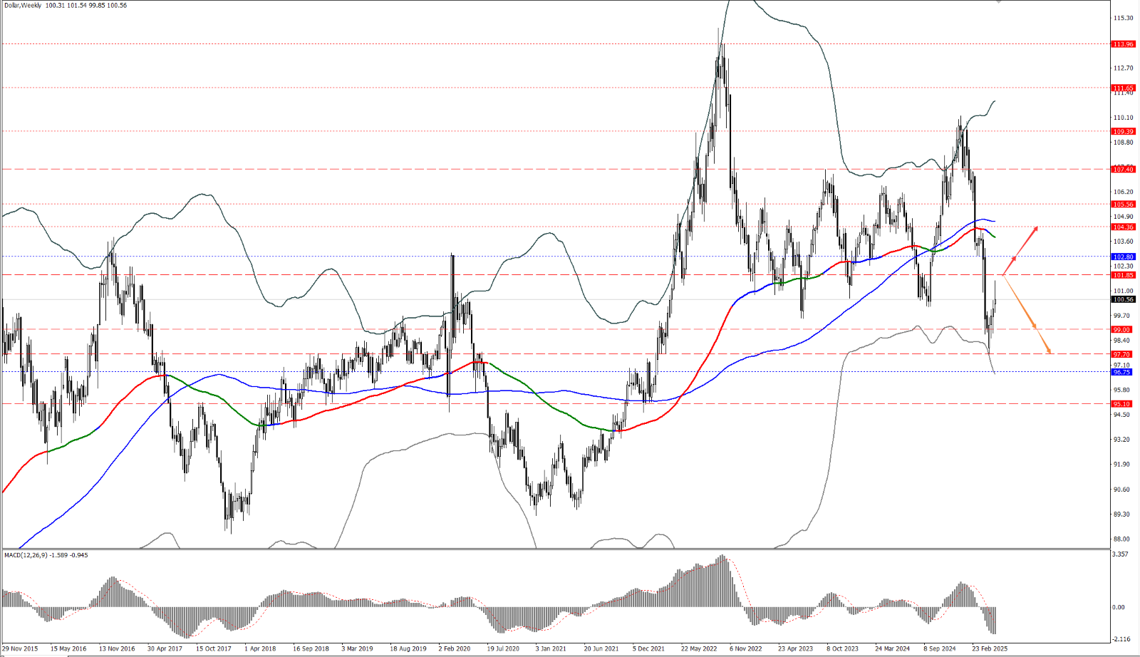 • 如果美指运行于 101.85 一线下方,则关注美指随后的下行力度,届时依次关注 99 和 97.70 两个位置的支撑力度;