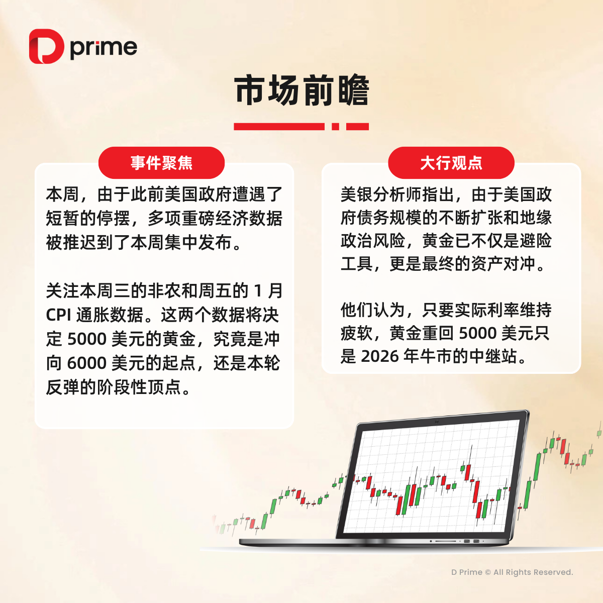 精选研报 | 上周,美国 12 月 JOLTS 职位空缺创五年多新低,降息预期重燃。黃金、白银持续反弹! 现货黄金收复 5000 美元大关! 本周,由于此前美国政府遭遇了短暂的停摆,多项重磅经济数据被推迟到了本周集中发布。还有哪些大事值得关注?下方图片速览: