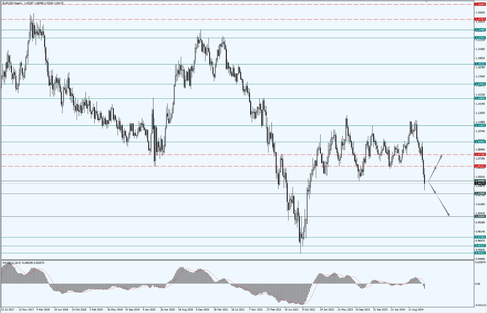 • 上周欧元持续下行,力度跌破 1.0449 一线,整体空头势能依旧强劲;