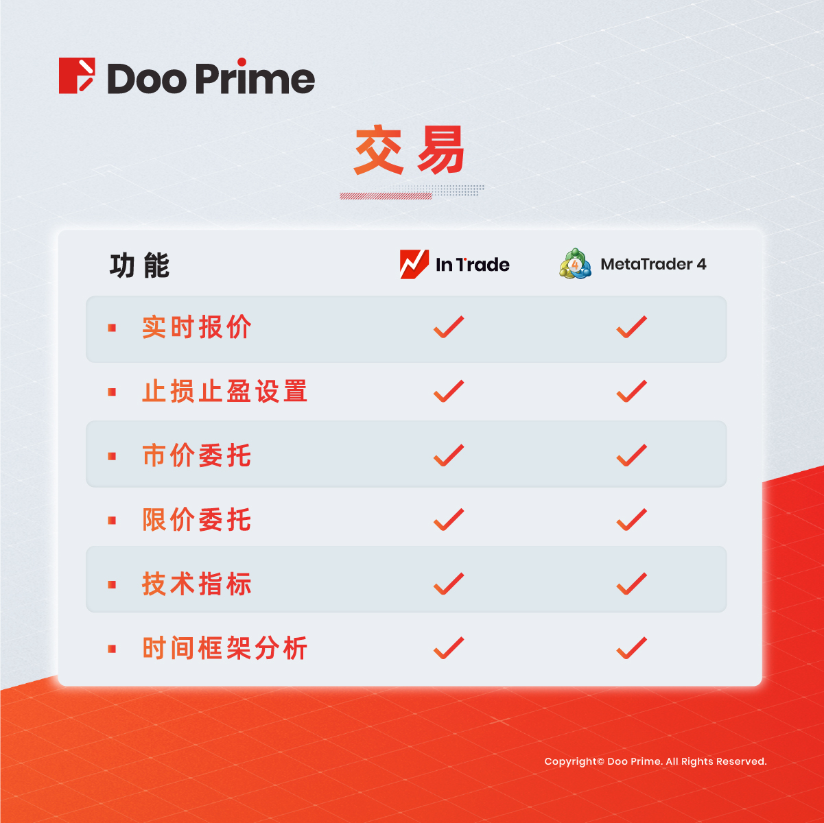 Doo Prime InTrade 与 MT4 的交易功能