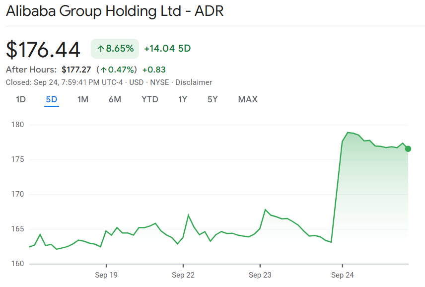 9 月 24 日至 25 日,阿里巴巴(BABA) 股价大涨近一成,创近四年来新高。今年以来,公司股价已累计翻倍。