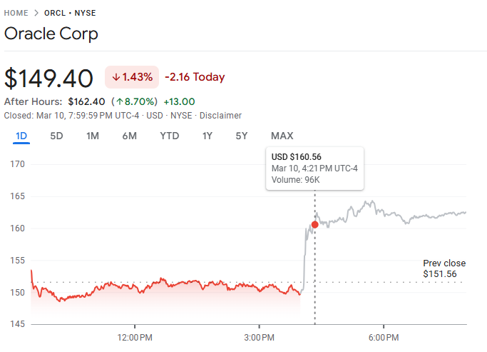甲骨文(ORCL)公布强劲财报与乐观展望,受益于人工智能(AI)算力需求激增,公司股价在盘后交易中上涨近 9%。公司核心云端基础设施业务营收同比大增 84%,达 49 亿美元,超出市场预期,也高于上季度 68% 的增长速度。