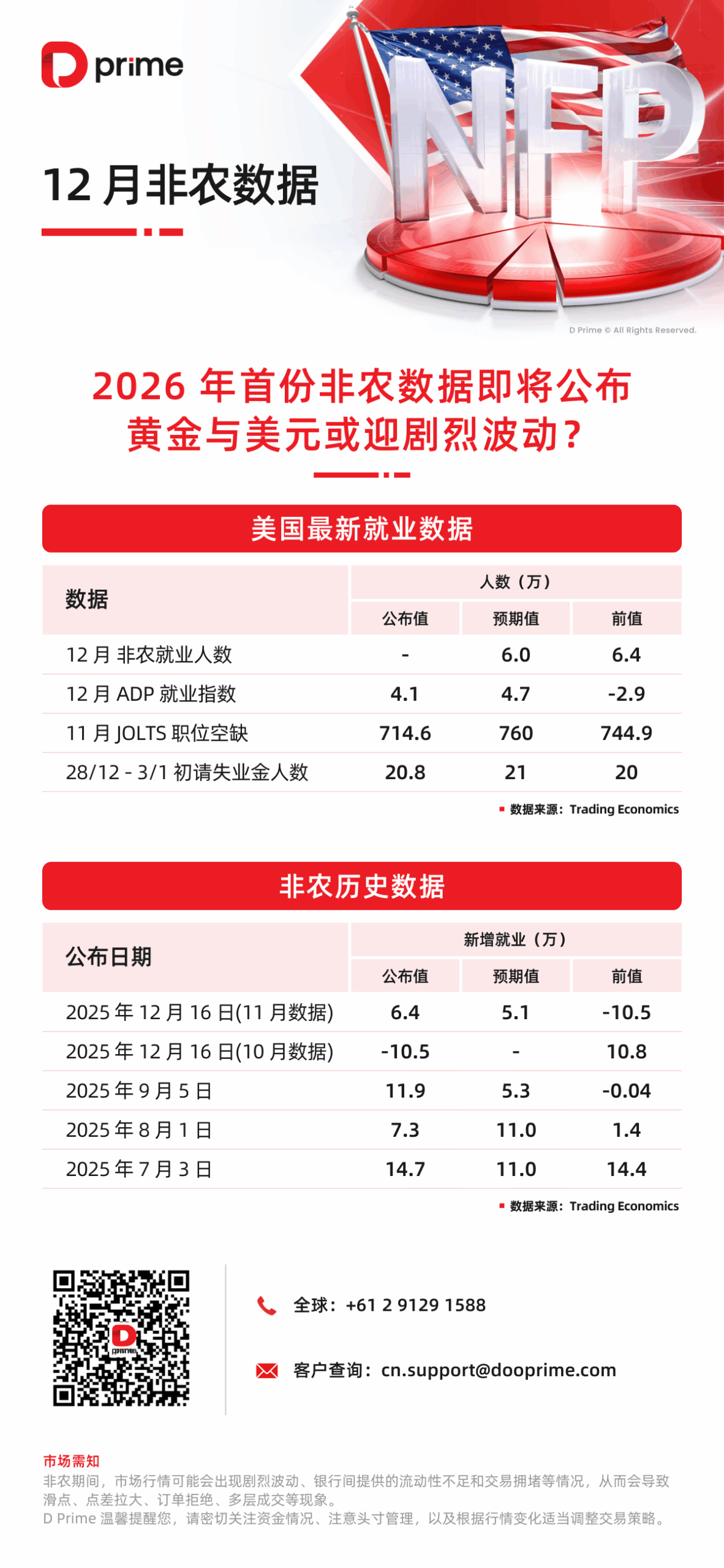 D Prime 非农海报|2026 年首份非农数据即将公布,黄金与美元或迎剧烈波动?