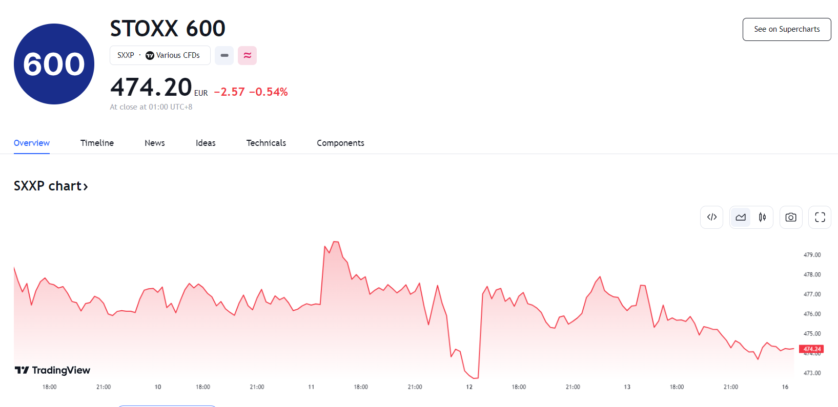 欧洲斯托克 600 指数收盘下跌 0.5%,延续了年初的低迷表现。数据显示德国经济自去年大流行以来首次萎缩,消费品和零售商领跌。