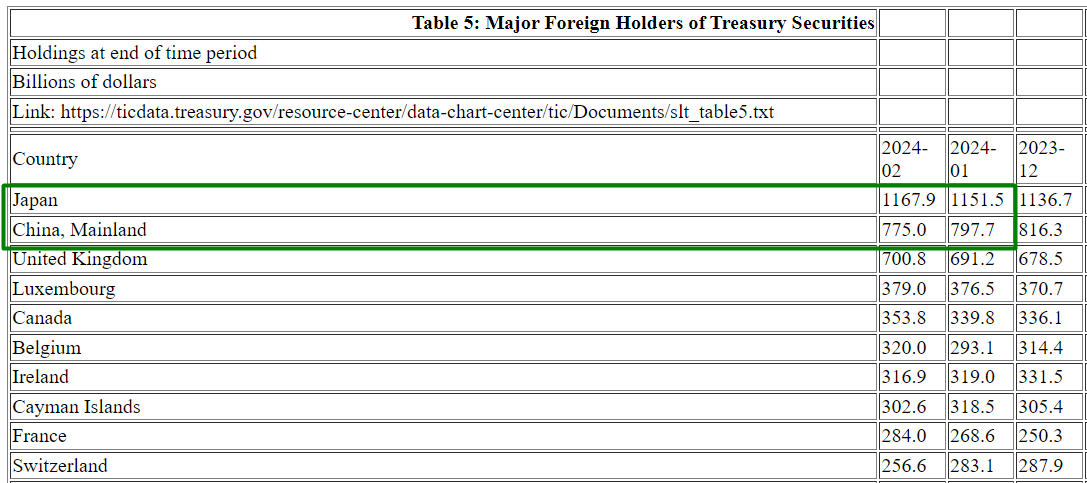 在市场对美联储今年降息的预期急剧降温、美债价格大幅回落的 2 月,美国第二海外“债主”中国的持仓继续下滑,最大“债主”日本可能继续逆市增持。