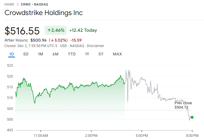 12 月 2 日至 3 日,CrowdStrike (CRWD) 上调 2026 财年盈利预期,将每股盈余 (EPS) 下限由 3.60 美元上修至 3.70 美元。公司表示,此举反映企业在应对日益复杂的黑客攻击及网络间谍威胁时,对其以人工智能驱动的资安解决方案需求显著升温。