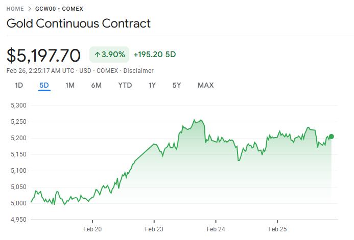 分析人士指出,近期美国贸易政策走向仍存不确定性,市场担忧关税上调可能拖累全球经济增长,从而提升避险资产吸引力。同时,美国在与伊朗新一轮核谈判前加大区域军事部署,令地缘紧张情势升温,也进一步支撑金价。