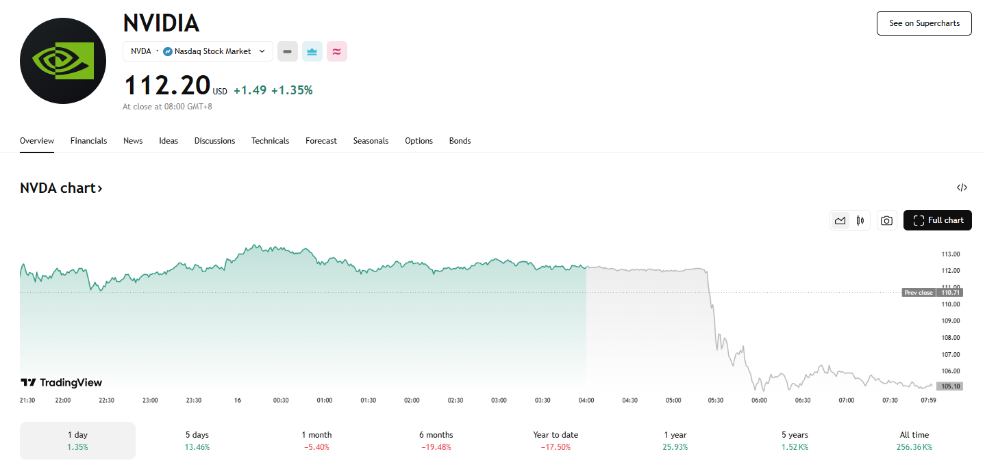 美股盘后交易中,英伟达股价暴跌 6.5%;其他主要芯片制造商也受到影响。美国超微公司 AMD 下跌超过 7%,英特尔下跌 2%,博通下跌 3.5%;台积电下跌 2%。