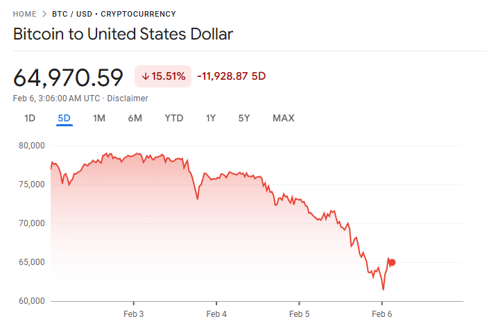 周四晚间,比特币价格一度跌破 6.1 万美元关口,跌幅一度扩大至 15%。