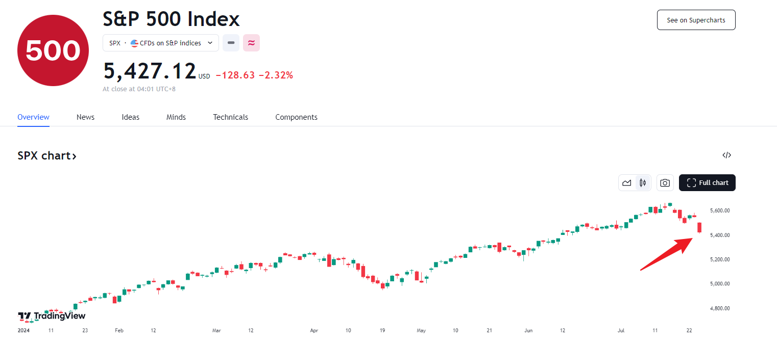(标普 500 指数收盘下跌超过 2% ,为 356 个交易日以来的首次,是自 2022 年 12 月以来最差的一天。)