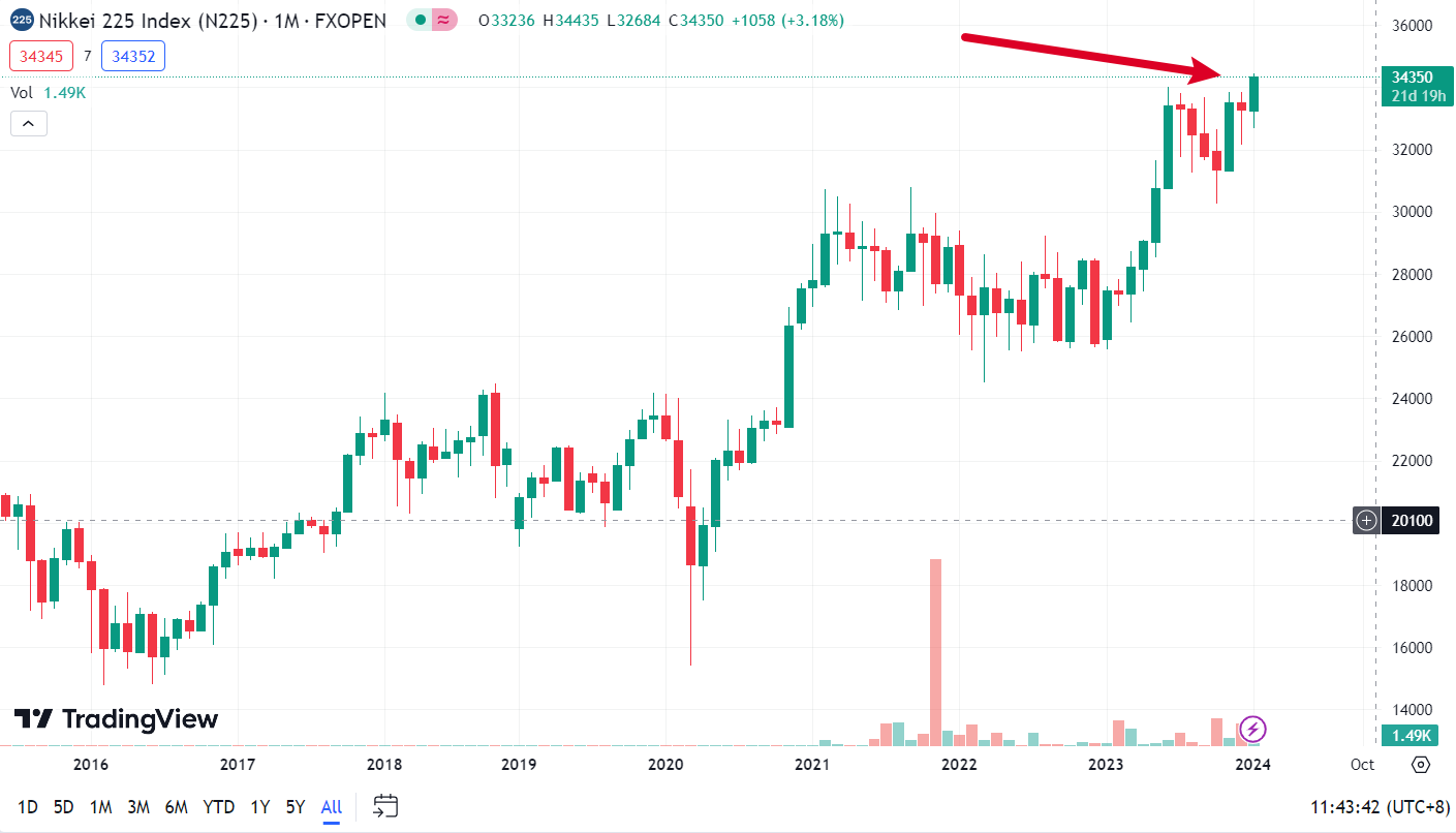 日本股市 2023 年跑赢全球市场,基准股指达历史新高