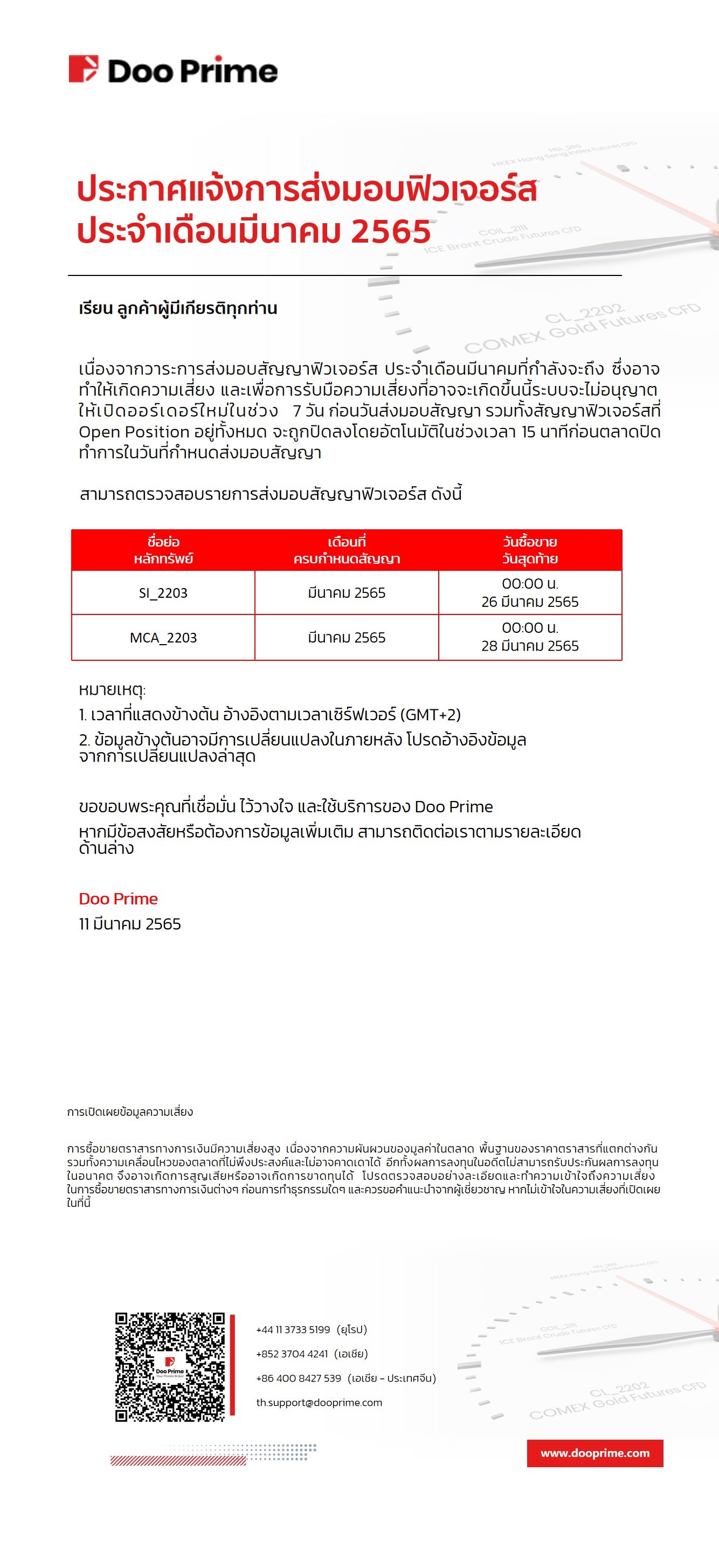 2022-03-11 | Futures Delivery , ส่งมอบฟิวเจอร์ส